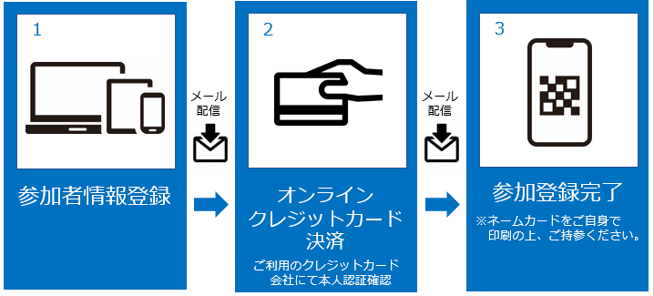 - オンライン参加登録時に、クレジットカード決済で参加費をお支払いいただきます。